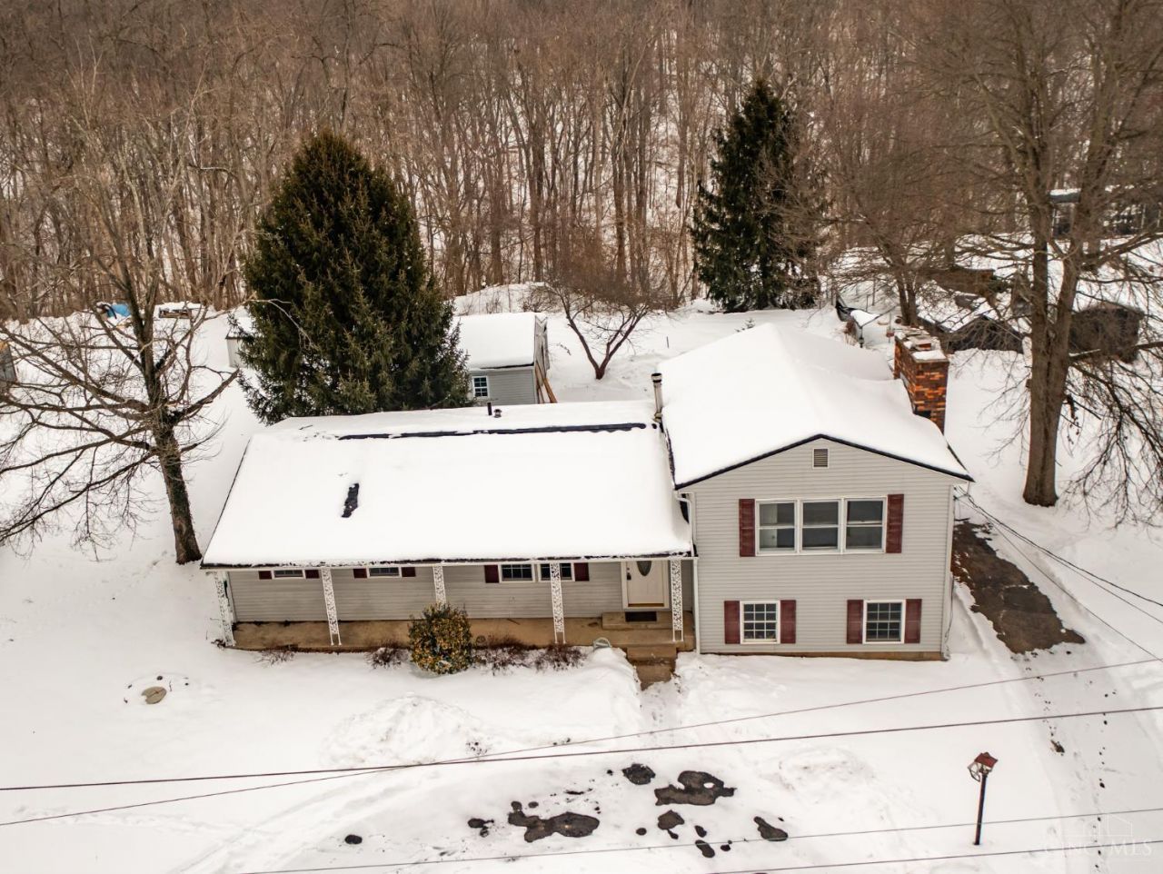 The welcoming front porch invites you into this updated tri-level. Situated on a large lot, there's plenty of room for the detached garage, circle drive and a wooded backdrop. Once inside, the main level boasts hardwood floors throughout. The bright living room is adjacent to the full hall bath, two bedrooms with one en-suite half bath and a large kitchen, complete with dining space. The sliding back doors lead to a deck that overlooks the back yard. Up a short staircase is the huge primary bedroom, with a wood burning fireplace, en-suite full bath and double closets. Need more space? Head down to the lower level living room, accented by...read more